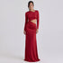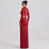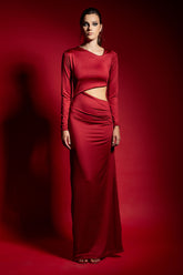 Μάξι φόρεμα με μακρύ μανίκι, κόψιμο στο πλευρό και ιδαίτερη λαιμόκοψη.