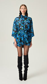 Για όσες λατρεύουν να ξεχωρίζουν, η Azure Petal Dream Mini Skirt από τη συλλογή Eveleya FW 24/25 προσφέρει μια τολμηρή και κομψή επιλογή. Το εκθαμβωτικό floral μοτίβο σε μπλε αποχρώσεις πάνω σε μαύρο φόντο δημιουργεί ένα έντονο και ακαταμάχητο look. Κατασκευασμένη από αέρινο ύφασμα που χαρίζει κίνηση και φρεσκάδα, αυτή η mini φούστα αναδεικνύει τη θηλυκότητά σας με κάθε βήμα.