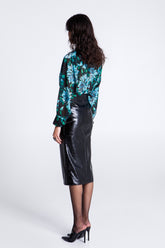 Midi φούστα από υψηλής ποιότητας faux leather με croco υφή και διακριτική γυαλάδα.