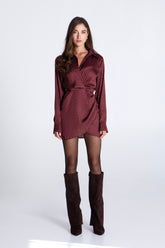 BURGUNDY POLKA DOTS MINI SATIN DRESS