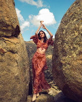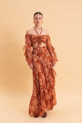 CINNAMON BLOOMS MAXI WRAP SKIRT WITH GOLD DETAILS