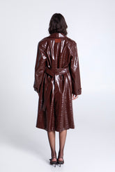 Ένα statement κομμάτι που αποπνέει δυναμισμό και διαχρονική κομψότητα. Το Cocoa Croco Trench Coat της Eveleya, σε πλούσιο καφέ με croco εφέ, προσφέρει πολυτέλεια και άνεση, ενώ η κλασική γραμμή του συνδυάζεται εύκολα από το πρωί μέχρι το βράδυ.