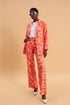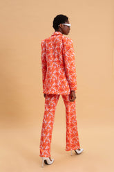 Παντελόνι κατασκευασμένο απο 100% βαμβακερό ύφασμα με τύπωμα και μοτιβο σε πορτοκαλί και ροζ τόνους. Ίσια, ελαφρώς καμπάνα γραμμή, που κολακεύει τη σιλουέτα και προσφέρει μια ρετρό αλλά απόλυτα μοντέρνα αισθητική. Είναι ψηλόμεσο, με κουμπί και φερμουάρ μπροστά, και διακριτικές πιέτες που χαρίζουν κομψότητα. Διαθέτει λάστιχο στο πίσω μέρος για άψογη εφαρμογή και πλαινές τσέπες. Το τολμηρό floral print του το καθιστά statement κομμάτι — ιδανικό να φορεθεί τόσο με το matching Coral Hibiscus σακάκι όσο και με λευκά basics για πιο casual chic look.