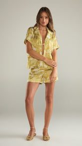 Δώστε μια δόση πολυτέλειας στις καθημερινές σας εμφανίσεις με το "Goldie Satin Shorts". Φτιαγμένο από απαλή σατέν ύφανση, αυτό το σορτς διαθέτει ένα εντυπωσιακό χρυσαφένιο μοτίβο που μαγνητίζει τα βλέμματα. Η άνετη εφαρμογή του το καθιστά ιδανικό για τις καλοκαιρινές σας βόλτες.Καλύπτει τέλεια μεγέθη από extra small εως large.