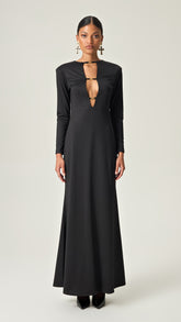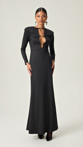 Το Obsidian Temptation Maxi Dress είναι η απόλυτη έκφραση κομψότητας και μυστηρίου. Με έντονο, σαγηνευτικό κόψιμο μπροστά και μακρυμάνικη γραμμή, αυτό το μαύρο φόρεμα προσφέρει μια δραματική αλλά ταυτόχρονα κομψή εμφάνιση. Οι χρυσοί κρίκοι προσθέτουν μια τολμηρή, εκλεπτυσμένη λεπτομέρεια που αναδεικνύει τη γοητεία του φορέματος.