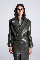 Κοντό jacket από faux leather με croco υφή και διακριτική γυαλάδα.