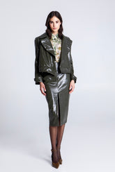 Midi φούστα από υψηλής ποιότητας faux leather με croco υφή και διακριτική γυαλάδα.