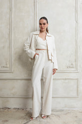 Φοριέται άψογα ως μέρος ενός total suit με το αντίστοιχο bustier και trousers ή συνδυάζεται με πιο relaxed pieces για ισορροπημένα looks.