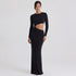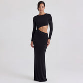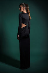 Μάξι φόρεμα με μακρύ μανίκι, κόψιμο στο πλευρό και ιδαίτερη λαιμόκοψη.
