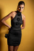 Μίνι φούστα με λάστιχο στην μέση, σούρες στα πλάγια και ραμμένο 3D λουλούδι.