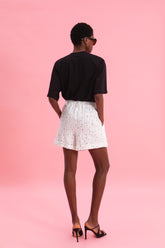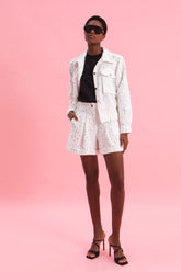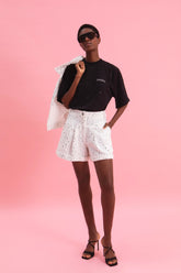 Αυτό το κοντομάνικο μπλουζάκι αποτελεί την απόλυτη πρόταση για ένα elevated casual look. Κατασκευασμένο από μαλακό, λευκό 100% βαμβακερό ύφασμα, ξεχωρίζει για τη χαλαρή του γραμμή και την άνετη εφαρμογή. Το στοιχείο που το κάνει να διαφέρει είναι οι διακριτικές στρας λεπτομέρειες που είναι διάσπαρτες σε όλη την επιφάνειά του, προσθέτοντας μια διακριτική λάμψη και θηλυκή κομψότητα.