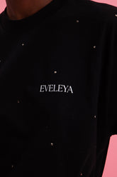 Στο ύψος του στήθους, η υπογραφή "EVELEYA" σε μαύρο χρώμα προσδίδει μοντέρνο χαρακτήρα και fashion-forward ταυτότητα. Είναι ένα κομμάτι που μπορεί να φορεθεί από το πρωί μέχρι το βράδυ, εύκολα συνδυάσιμο με denim, υφασμάτινα παντελόνια ή ακόμη και φούστες. Ένα basic μπλουζάκι με statement twist που συνδυάζει απλότητα και glam με τον πιο αρμονικό τρόπο.